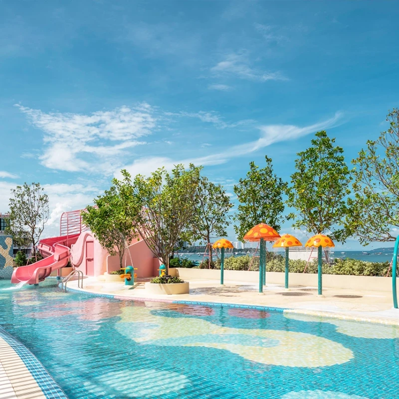 Cool off and enjoy our inviting family pool, or let the kids splash around in the mini water park. For a more relaxing experience, unwind on the semi-outdoor terrace while the little ones dive into their water adventures.