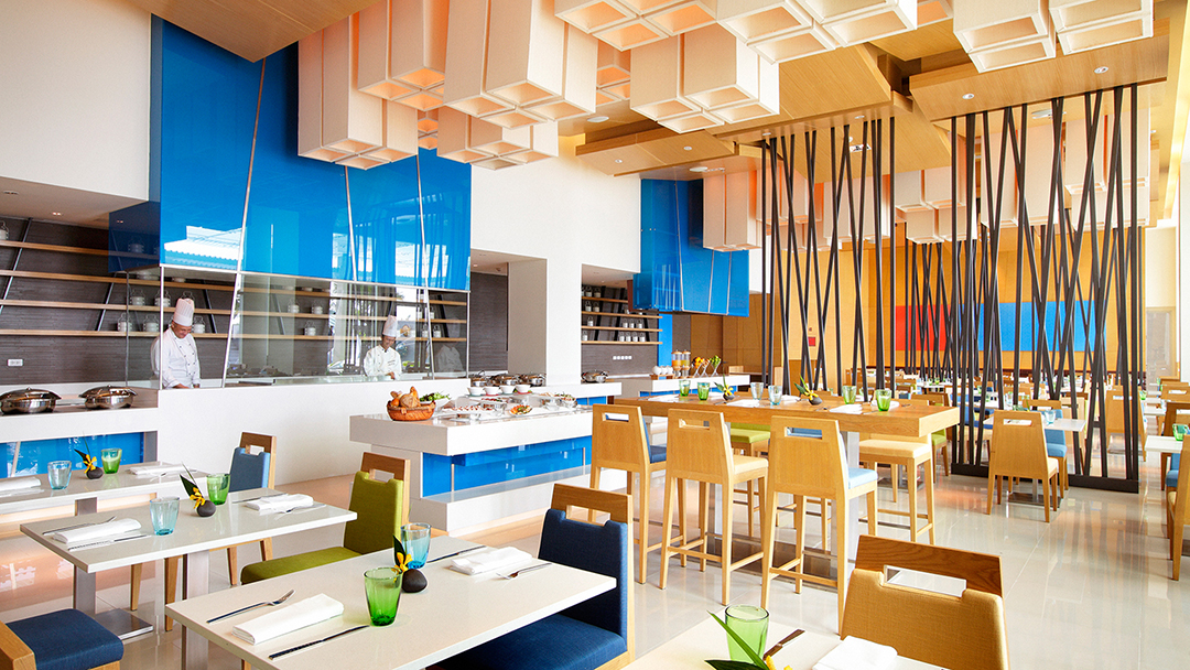계란 및 국수를 비롯한 다양한 종류의 태국 요리 및 세계 각국 요리를 제공하는 라이브 요리 스테이션을 통해 아무도 아침 식사에 굶주릴 수 없습니다.