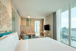 استلقِ واسترخِ في جناح على مساحة 110 مترًا مربعًا يمتزج فيه التصميم العصري باتساق مع التجهيزات الأنيقة. يشتمل على غرفة معيشة منفصلة ومنطقة طعام وغرفة نوم وغرفة مكياج وحمام واسع به حوض استحمام وكابينة استحمام بدُش. يزخر هذا الملاذ العائلي أيضًا بشرفتين خصوصيتين بإطلالات شاسعة على شاطئ باتايا بيتش.