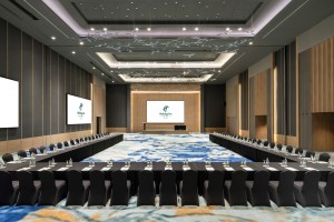 The Ballroom's ceiling is nine metres high. It provides a functional and flexible venue for weddings, gala dinners, product launches, cocktail parties and a wide range of other special occasions. The Ballroom seats some 500 guests for a cocktail event. It may also be divided into two separate sections for more intimate gatherings. The space is fully equipped with state-of-the-art sound, lighting and conference technology that includes high quality 200 inch and 300 inch LED screens.